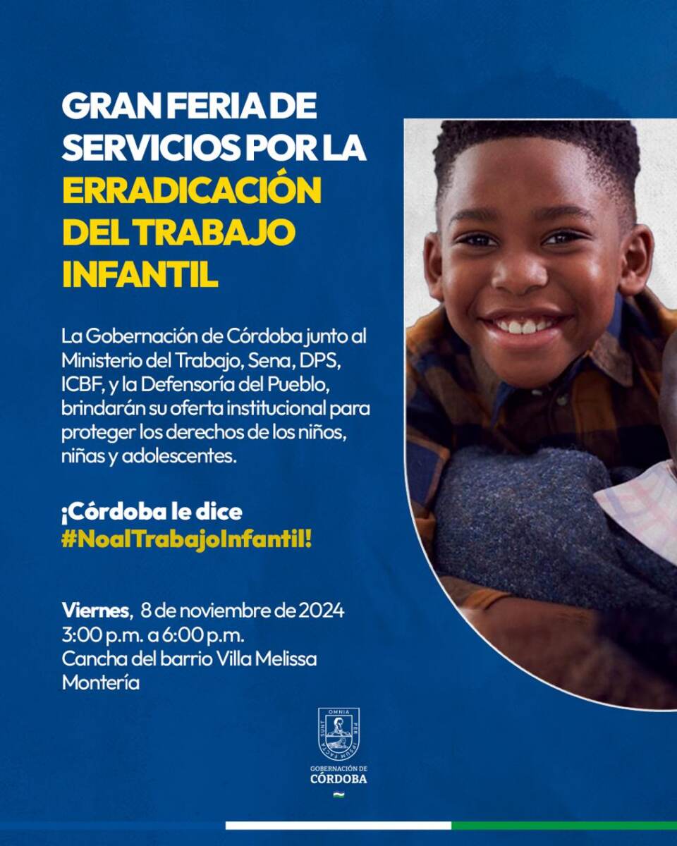 Gobernación de Córdoba realizará una feria de servicios por la erradicación del trabajo infantil Con...