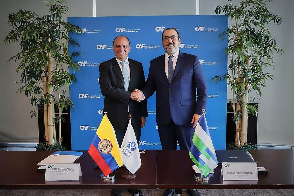 Ciudad de Panamá, El Defensor del Pueblo, Carlos Camargo Assis, firmó un convenio con el Presidente Ejecutivo de CAF (Banco de Desarrollo de América Latina) Sergio Díaz-Granados, que tiene como objetivo principal desarrollar programas y proyectos que permitan impulsar la afectividad de los derechos humanos de niños, niñas, adolescentes, jóvenes, mujeres, población con discapacidad, población étnica y personas mayores en todos los departamentos de Colombia.